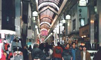 | 新京極 買い物客や修学旅行生で 夜おそくまでにぎわってい ます。 |