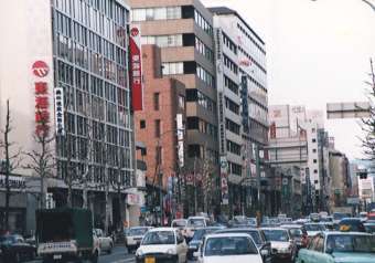 | 京都で一番の商業地域で あり,大きなビルが立ち並 んでいます。 |