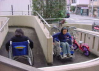 | 車いす体験 私達は、お年よりや体の不自由な人達によりよく接していくためにどのようなことをすればいいのか。またどのようなことをすれば喜んでくださるかと考えて、実際に車いすに乗って町にでてみることにしました。 これは近くにある市営住宅の車いす用のスロープです。 実際に上り下りしてみると普通に階段を歩くと3秒ぐらいなのに車いすだと1分ぐらいかかりました。 車いすで生活する人の大変さがよく分かりました。 これから車いすで困っている人を見かけたら、声をかけて手伝えることがあれば手伝ってあげたいと思いました。 |