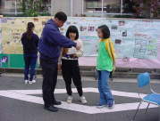 アンケート用紙を道を歩く人に配って自分たちで作ったはがきを配りました。