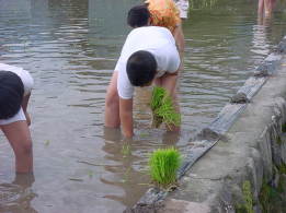 | 田植え体験活動 バスにのって上賀茂神社の近くにある田んぼまで田植えに行きました。 はじめての経験でしたが、結構上手にできたと思います。 大きく育ってほしいと思いました。 |