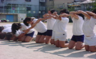| 秋の運動会 これは組体操の「波」をしているところです。 波をしているときに地面が砂で、石がいっぱいだったので、足が痛かったです。 でも、がんばって一生懸命できたので、よかったです。波以外の競技でも、なかよしグル−プでする競技も何回も練習してできたので、うれしかったです。 |