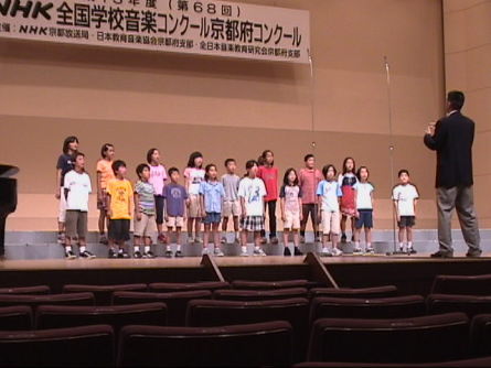 | NHK全国音楽コンクールに参加して これは、夏に6年生と一緒に行ったNHK音楽コンクールの写真です。歌った曲はロボットと風になれを歌いました。この時は、本番でとてもドキドキしました。でも、練習してきた事ができたのでとてもうれしかったです。 |
