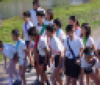 | 駅伝大会 私達は、5年生ですが、私達の学校は、全校生徒人数、39名と、とても少ないのです。だから、駅伝大会は、6年生は、人数が少なすぎて、出場できないので、私達が、助っ人にいきました。今まで、6年生と一緒に、練習してきました。 そして、始まったとき、きんちょうが、高まりました。早く自分の番がこないかと、待っていました。同じ、みんなが、通った道を行くとみんなが、がんばって走ったはったんだ・・・・・。と思いました。最後に 、みんなが、がんばりといってくれて、うれしかったです。![]() |
