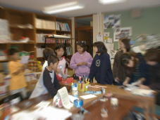 | 11月には、大学の学園祭に行きました。そして、大学生にいろんな店や場所を教えてもらいました。いろんなところに回りました。最初に行ったところは、大学生のバンドを見ました。とてもはく力は、あったけど、何の歌を歌ったはるのかは、分かりませんでした。次に行ったところは、わりばし鉄ぽうをしに行きました。練習の時は、たくさん当たっていたのに、本番では、全然当たりませんでした。でも楽しかったです。次に行ったところは、たこ焼きを食べました。こんにゃく入りでした。初めて食べたけど、おいしかったです。 弓矢をしに行きました。普通の所より近かったけど、私は、5本中3本当たりました。うれしかったです。最後にワッフルを食べました。とても楽しい1日でした。 |