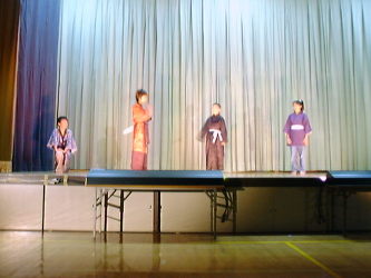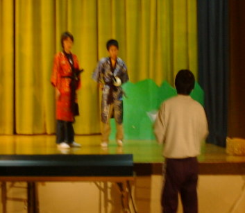 | この写真は学芸会の練習の写真です。先生が監督となって教えます。先生はとても厳しかったけど,教えられるうちにとてもうまくなりいい劇ができました。先生が僕にアドバイスをしてくれて僕も自分でうまくなった気がします。 | |