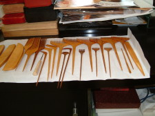 わたしたちは、かみゆい名人にかみのけをゆう、古い物や今つかっている物を見せていただきました。