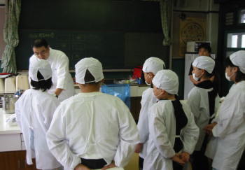 | 11月に校区の料理人の方に大根を使った料理を教えてもらうために手紙をもってたのみに行きました。 その時は、いそがしかったのかちょっとおこっておられたようで怖かったです。 でも勉強のためだと言って教えに来てくださいました。 |