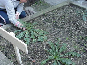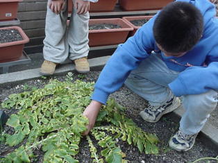 学校の花壇に植えた聖護院大根は虫にやられたので