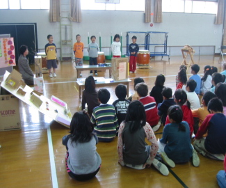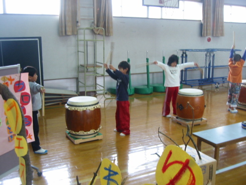 | オープニングにわだいこをえんそうしました。 どうですか。かっこいいでしょ! たくさんの友だちがきてくれて、とってもたのしいフェスティバルになりました。 |