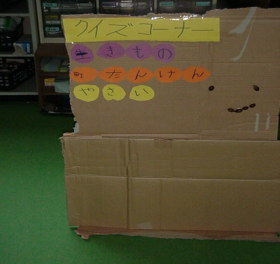 いきものクイズ・まちたんけんクイズ・やさいクイズがあります。クイズボックスのなかからえらんでもらいます。よく考えて答えてください。 |