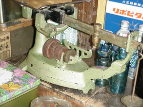 | ぼくたちがよく行くお店です。古くからあるお店で,おかしをうっています。 店のなかにこんなものがありました。はかりです。これでみそをはかってうっているそうです。 |