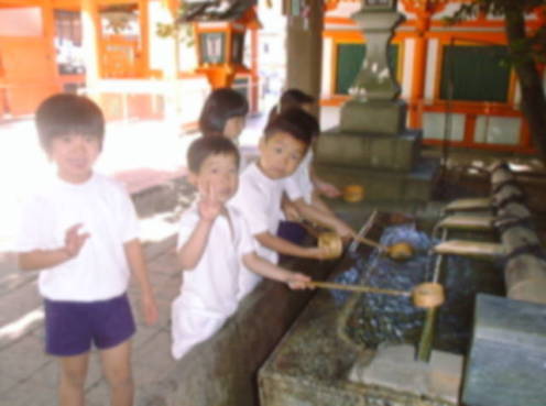 八坂神社に行きました。入ったところに水がながれています。 これからおまいりします。