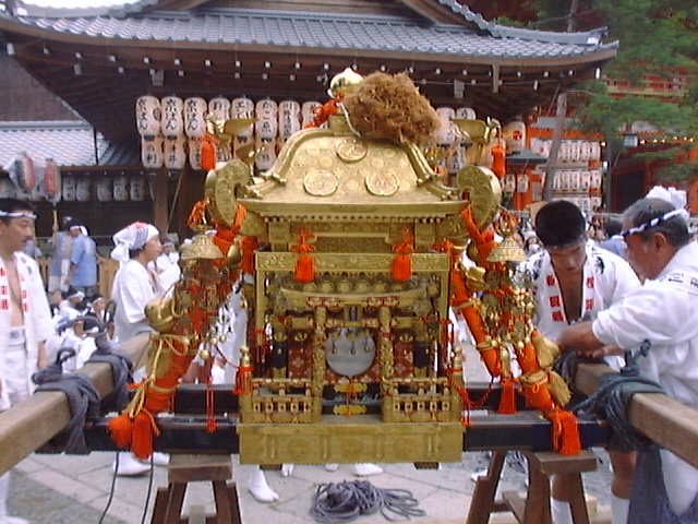 大人の神輿は三基あります。その中の東ござだけに子供神輿があります。ぼくたちは、子供神輿が自慢です。
