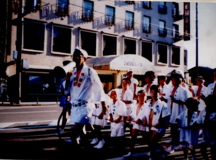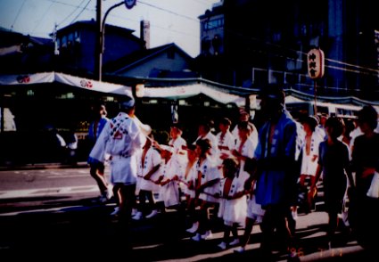 これは、四条道りを歩いている所です。 みんな手をたたいて、歩きます。 |