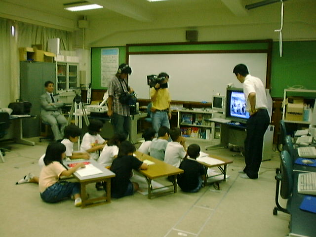 高倉小学校の友達が、鉾でたたくかねをテレビ会議で聞かせてくれました。