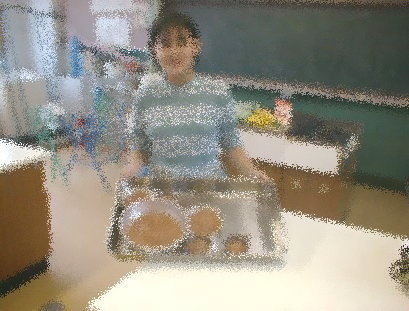 うまく焼けているかなと思いました。30分たって、ピーという音が聞こえました。どきどきして見ると、ふっくらと焼けていました。